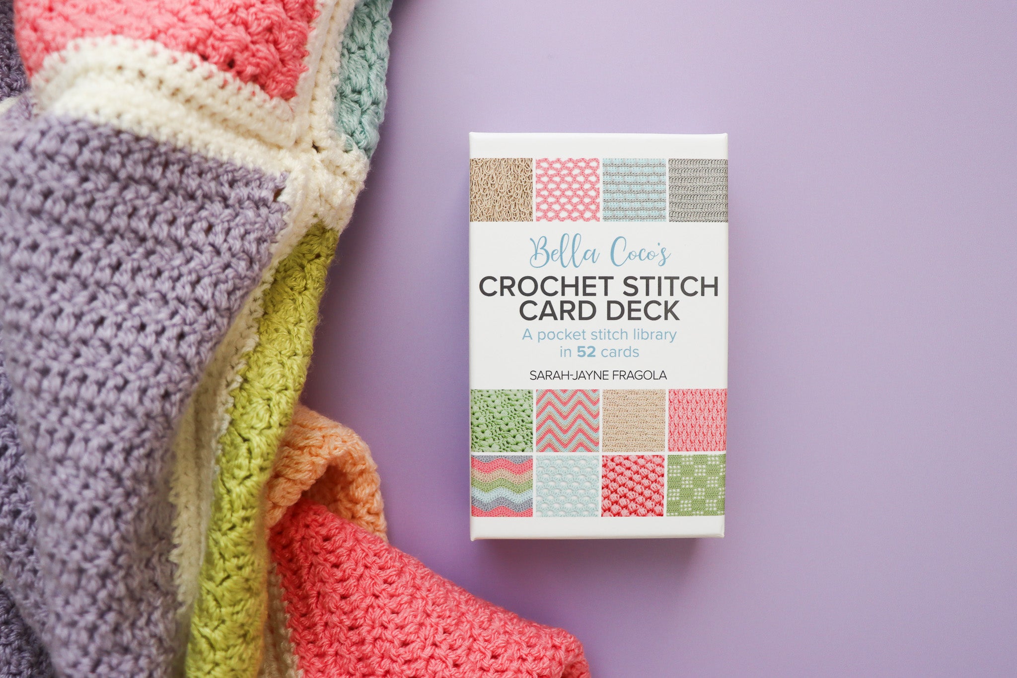Note: This deck has been expertly curated from, and is a card-deck companion to, the brand-new book by Sarah-Jayne Fragola: Bella Coco’s Crochet Stitch Library (9781800922198: Search Press, 2025).